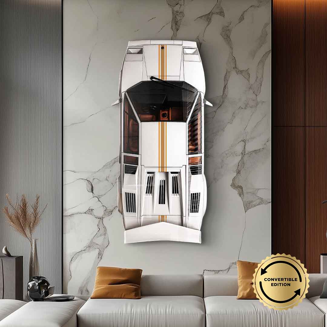 DOTCOMCANVAS® Premium Wandskulptur mit Freiform-Acrylglasbild mit Lamborghini Countach Motiv.